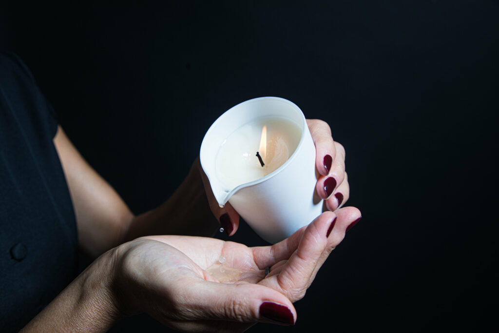 Une fois fondue, la cire se transforme en une matière chaude et enveloppante, favorisant une glisse continue, un toucher sécurisant et une présence plus profonde dans le geste.
